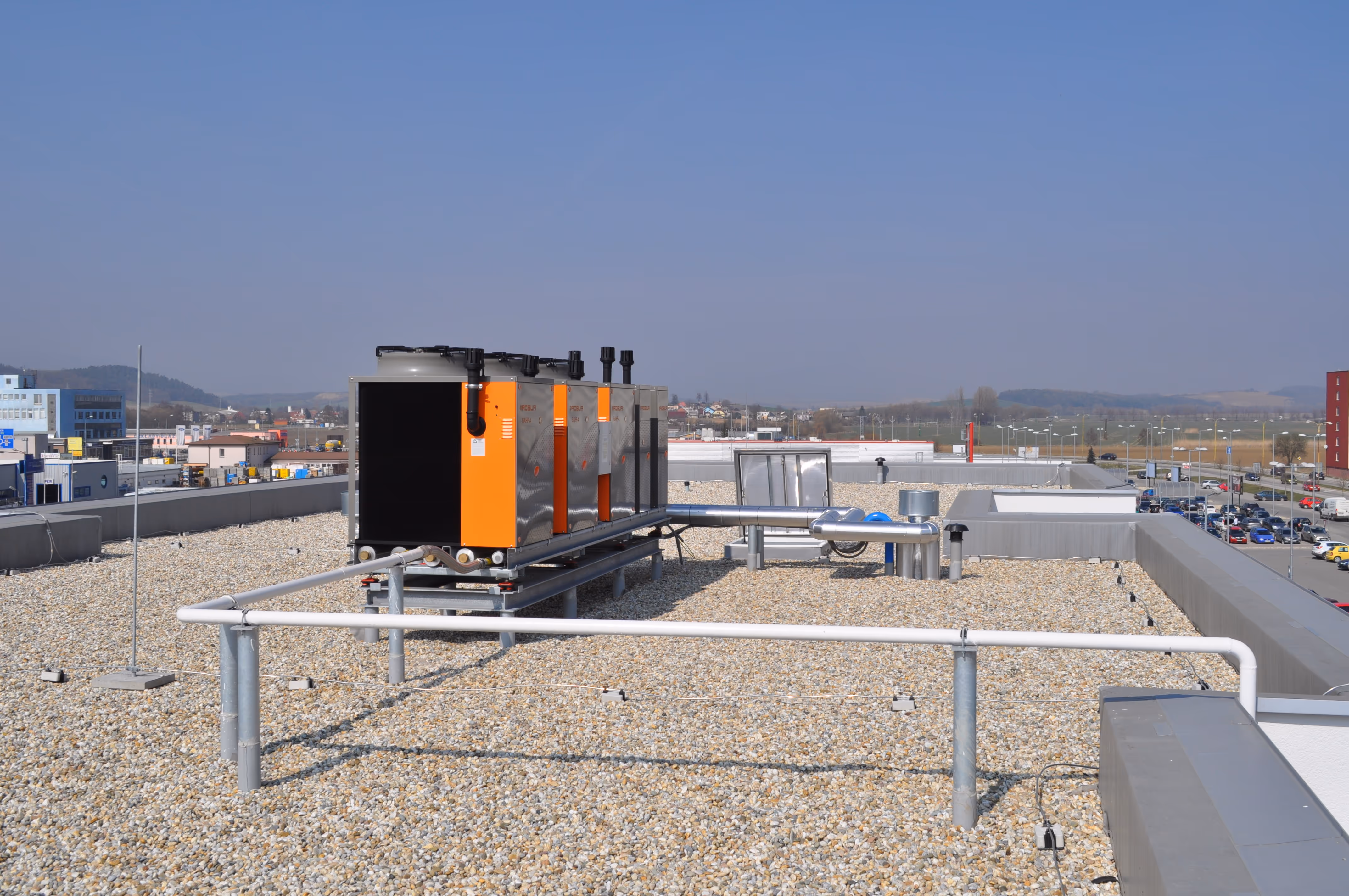 Pro zajištění efektivního a ekologického provozu byla jako hlavní zdroj tepla navržena kaskáda tří plynových absorpčních tepelných čerpadel ROBUR GAHP-A S1 HT a tří plynových kondenzačních kotlů ROBUR AY 00-120. Celá sestava je umístěna na střeše objektu.